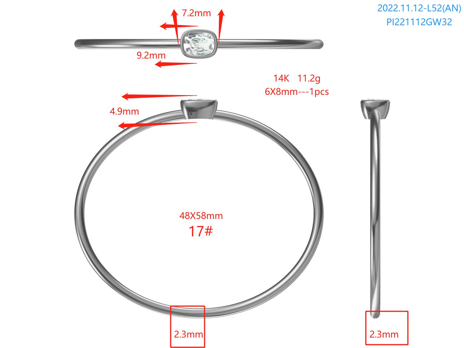 使用ストーン:6×8オーバルカット(またはエメラルドカットなど)×複数石(個数未記載)